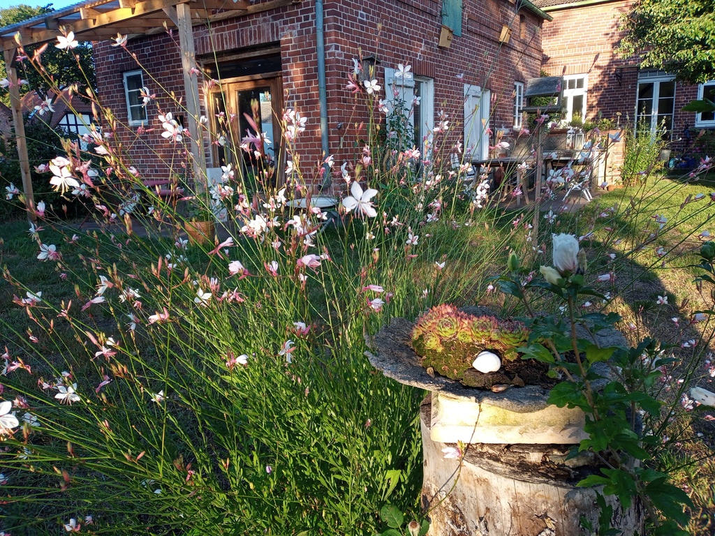 Der Workshop findet auf dem historischen Hof Martin E. Lorenzen statt, gelegen auf einer Warft mit Obstgarten und Seebrise.