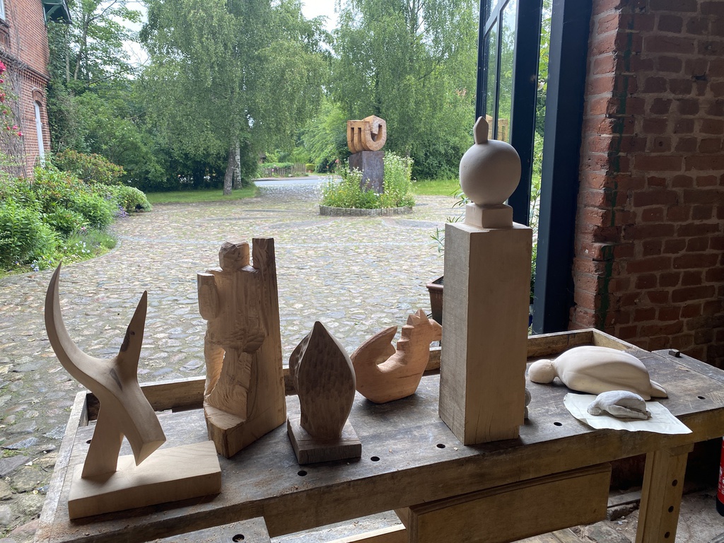 In den Workshops erarbeiten Sie eigenschöpferisch figürliche oder abstrakte Skulpturen unter der Anleitung des Bildhauers Yves Rasch. Zunächst werden die Ideen und Entwürfe in Ton modelliert, anschließend in Holz ausgeführt.